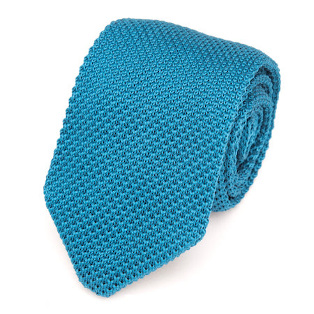 Cravatta da uomo in maglia turchese tinta unita.